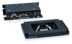 The U-760 PILine® stage offers travel ranges to 25 x 25 mm – this stage is compatible to the above mentioned inverse microscopes from Nikon and Olympus. Both stages (U-780 and U-760) are offered as systems in combination with a suitable controller (C-867.2U2) and a USB joystick.