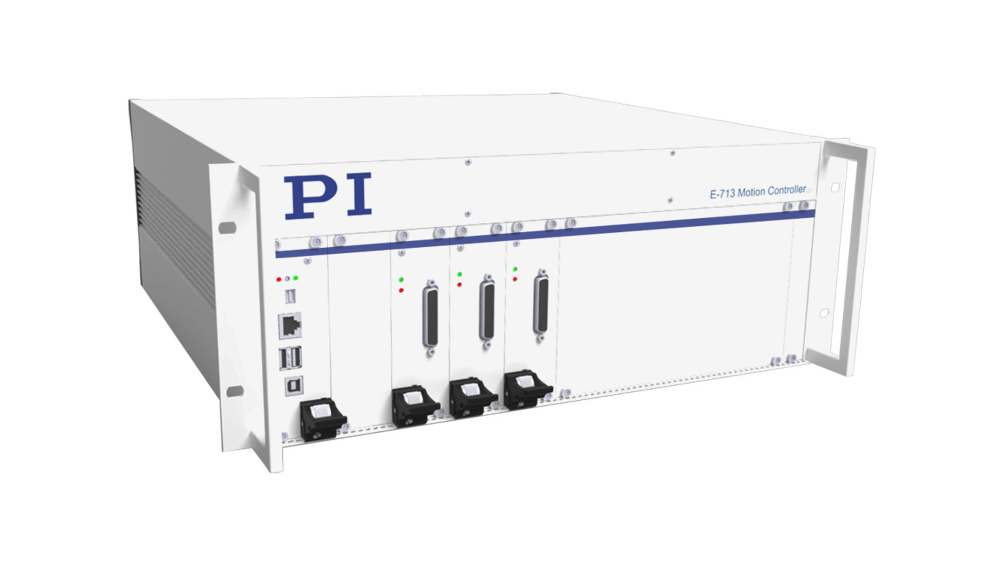 The E-713 motion controller coordinates the motion of up to 3 logical axes. Depending on the configuration, axis motion is based on up to 3 PiezoWalk® channels and 3 sensor channels. Users can easily command axis motions as the controller handles conversion between axis-related and channel-related values as well as algorithm-based control of PiezoWalk® NEXLINE® walking drives.
