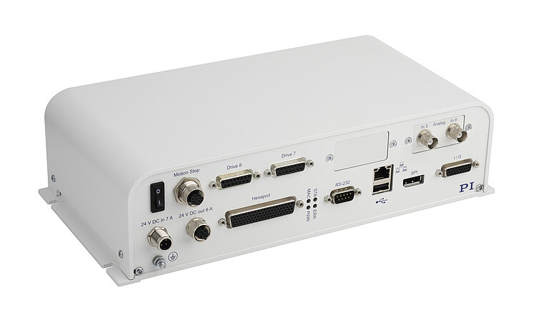 6-axis controller for hexapods, TCP/IP, RS-232, benchtop device, incl. control of two additional axes, EtherCAT interface, motion stop, analog inputs