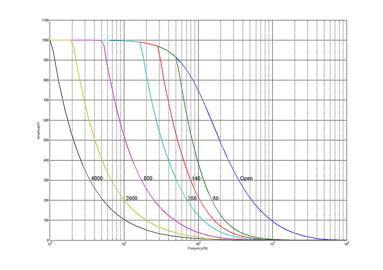 Amplifier bandwidth, large signal | 3.5 Hz (660 nF); 35 Hz (70 nF) |