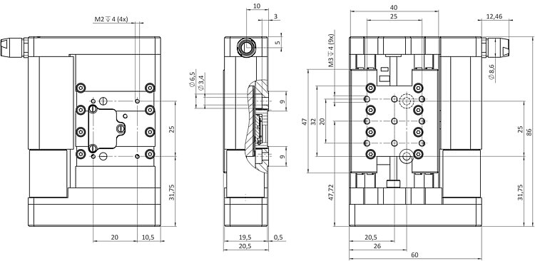 | Travel range in X | 25 mm | |