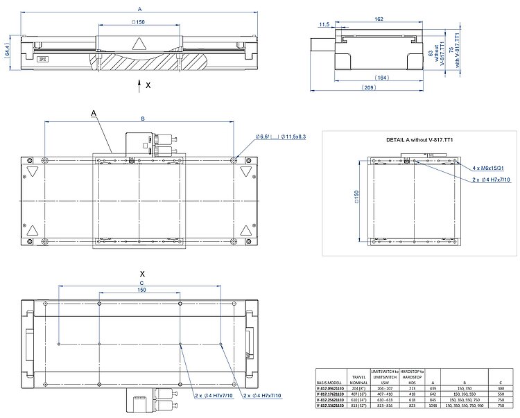 | Motion | V-817.096211E0 | V-817.176211E0 | V-817.256211E0 | V-817.336211E0 | Tolerance |