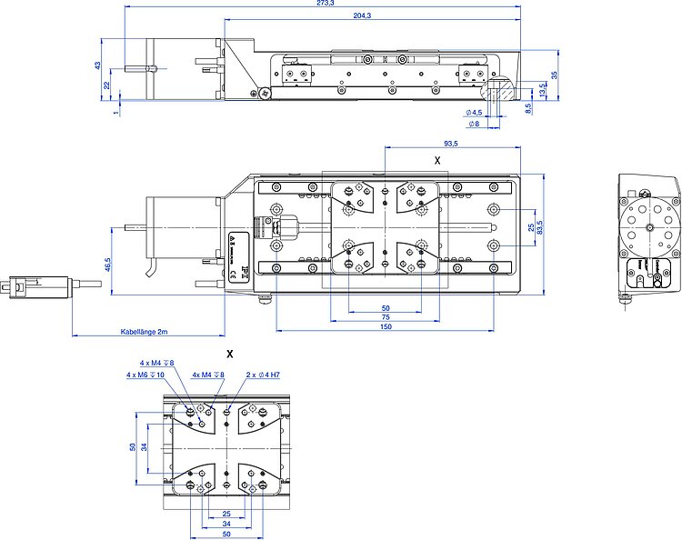 | Maximum velocity in X, unloaded | 10 mm/s | 10 mm/s | 10 mm/s | 1.5 mm/s | 1.5 mm/s | 1.5 mm/s | 10 mm/s | 10 mm/s | 10 mm/s | 10 mm/s | 10 mm/s | |