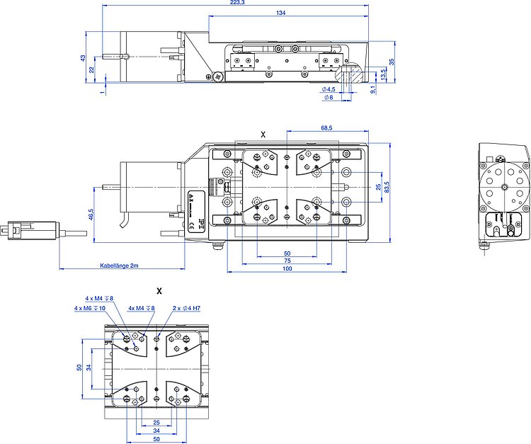 | Travel range in X | 26 mm | 52 mm | 102 mm | 26 mm | 52 mm | 102 mm | 26 mm | 52 mm | 102 mm | 52 mm | 102 mm | |