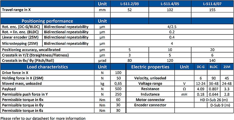 | Motion | L-511.033111 | L-511.053111 | L-511.073111 | L-511.035111 | L-511.055111 | L-511.075111 | L-511.033132 | L-511.053132 | L-511.073132 | L-511.035132 | L-511.055132 | L-511.075132 | L-511.20DG10 | L-511.40DG10 | L-511.60DG10 | L-511.20SD00 | L-511.40SD00 | L-511.60SD00 | L-511.2ASD00 | L-511.4ASD00 | L-511.6ASD00 | Tolerance |