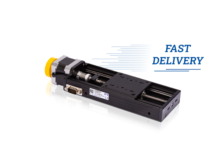 Linear stage; DC motor; 100 mm travel range; 50 N load capacity; 20 mm/s maximum velocity; metric threaded spindle; incremental rotary encoder, 2000 cts./rev. resolution, A/B quadrature, RS-422