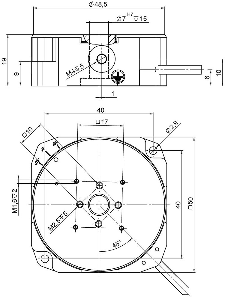 PILine® rotation stage; PILine® piezo motor, performance class 1; >360 ° rotational angle; 5 N load capacity; 720 °/s maximum angular velocity; incremental angle measuring system, 17 µrad sensor resolution; 1.5 m cable length