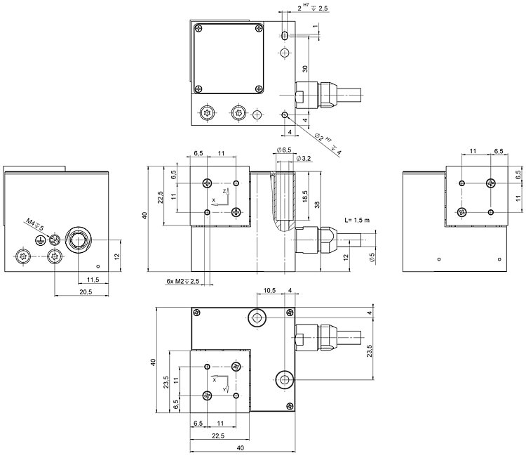 Parallel-kinematic NanoCube® nanopositioner; 100 µm × 100 µm × 100 µm travel range (X × Y × Z); capacitive, direct position measuring; D-sub 25W3 (m); 1.5 m cable length