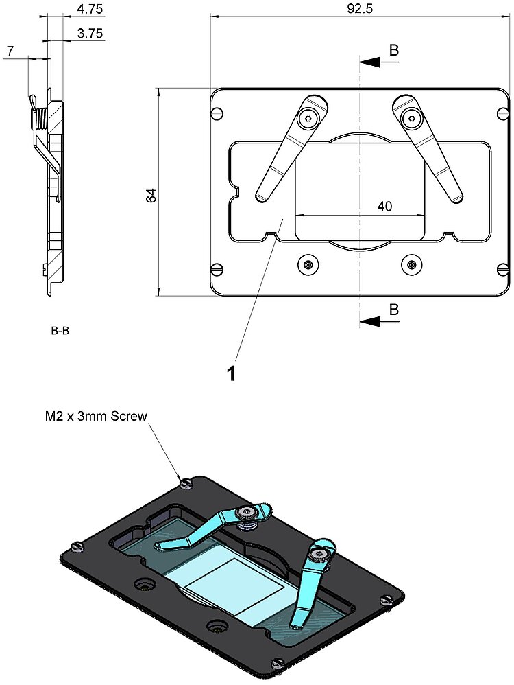 - Clear aperture for 3×1'' microscope slide, recessed insertable holder