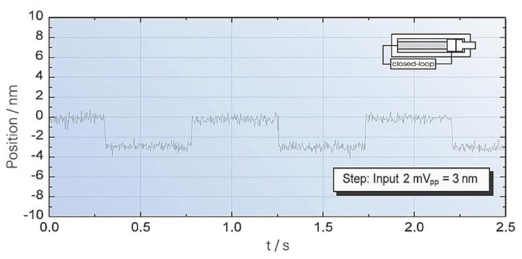 The resolution of the system is only limited by the noise of the amplifier and measuring technology because PI piezo actuators are free of friction.