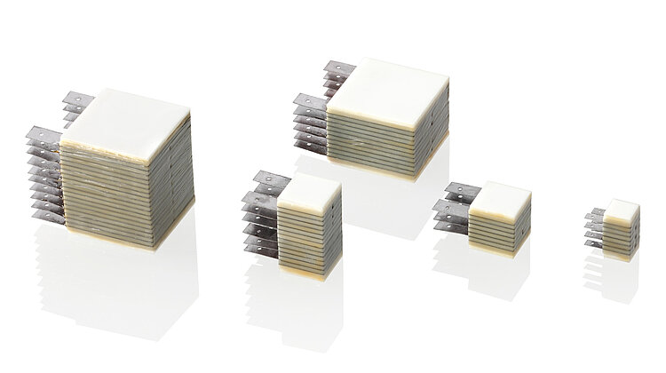 - Operating voltage range, displacement, layer thickness, cross-sectional dimension