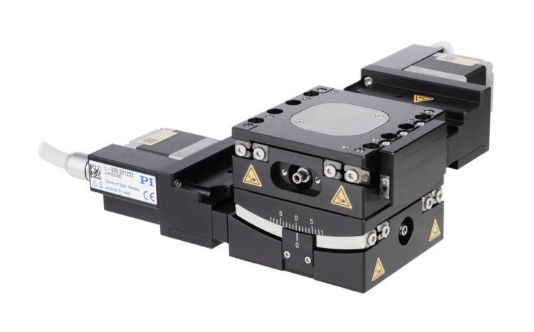 - Compact, stackable design with high flexibility: Thanks to its compact design and the ability to combine two goniometers with identical centers of rotation, the L-886 offers maximum flexibility for precise multichannel photonics alignment applications.