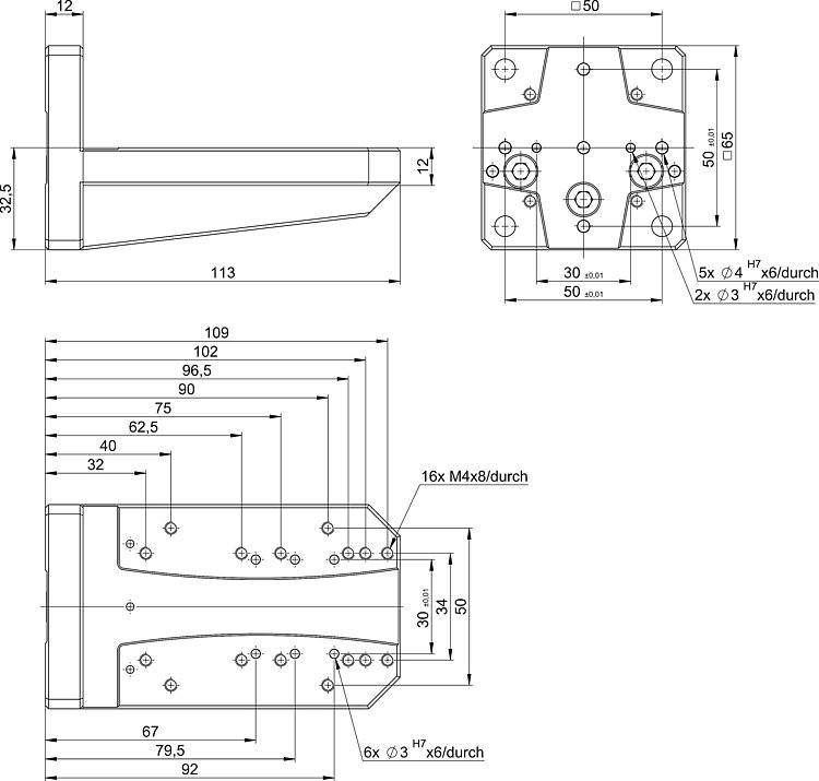 - Adapter bracket on positioner: The adapter bracket can be mounted on the moveable translation stage of the positioner and is then moved with the positioner accordingly.