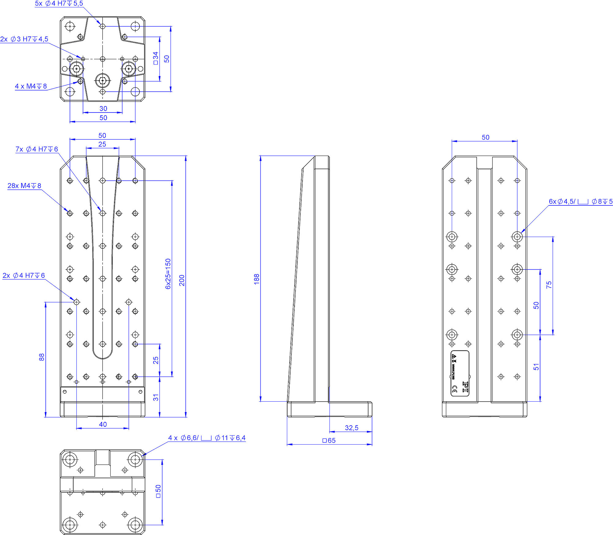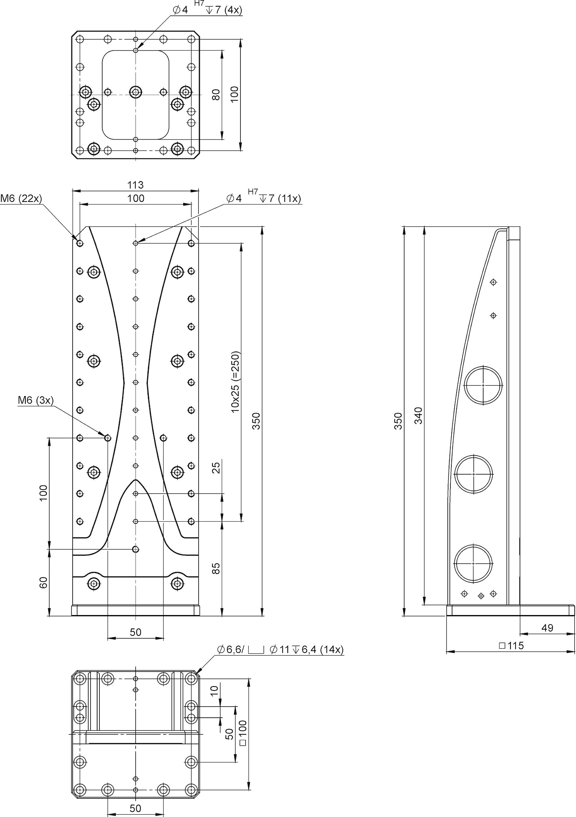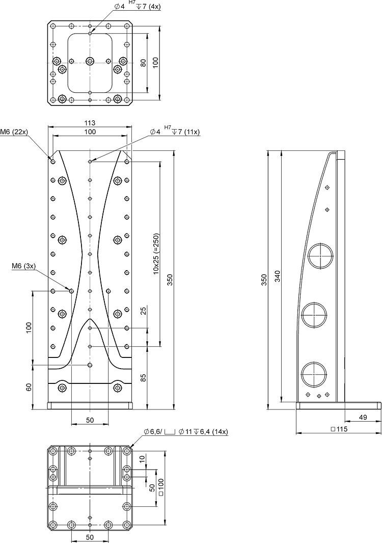 Adapter bracket for vertical mounting of positioners with up to 100 mm width and 300 mm length, vacuum compatible to 10-6 hPa