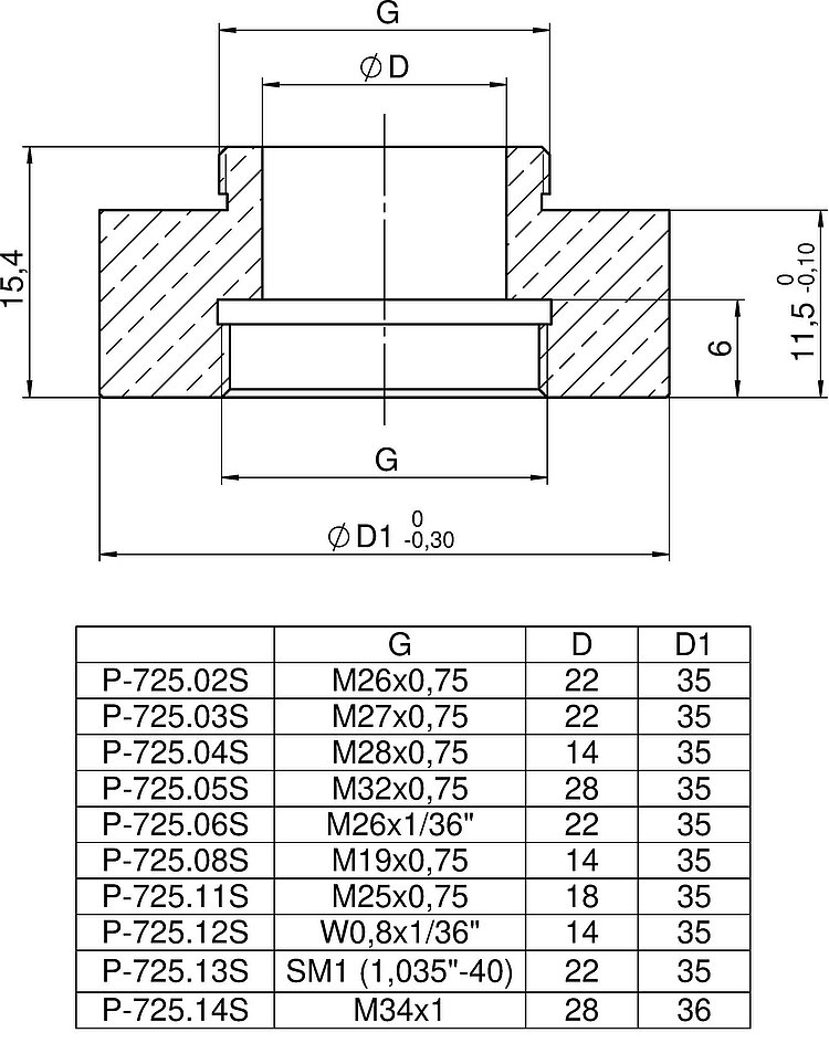 Objective spacer for correcting the parfocal length, 11.5 mm, M25 × 0.75 mm thread